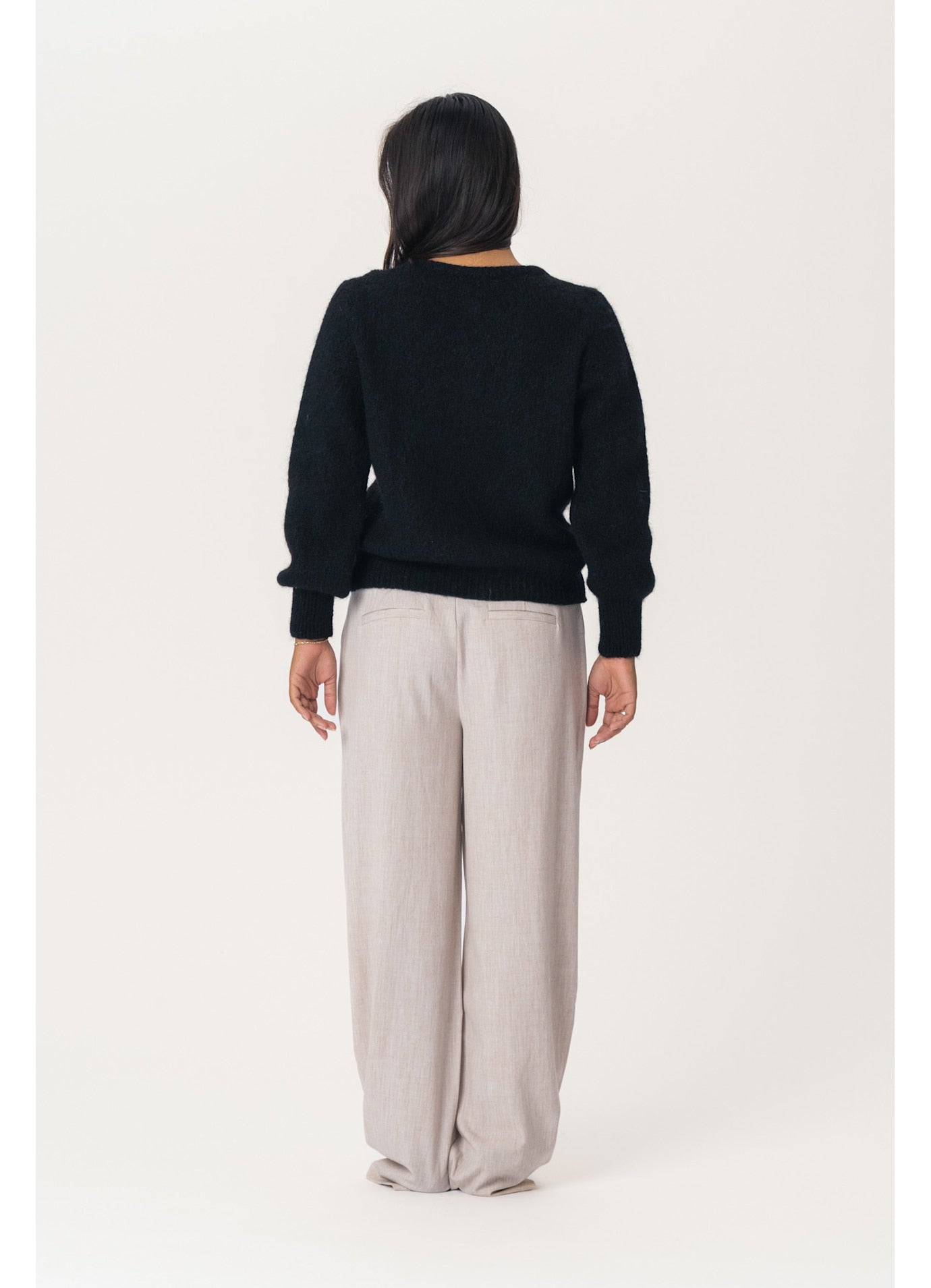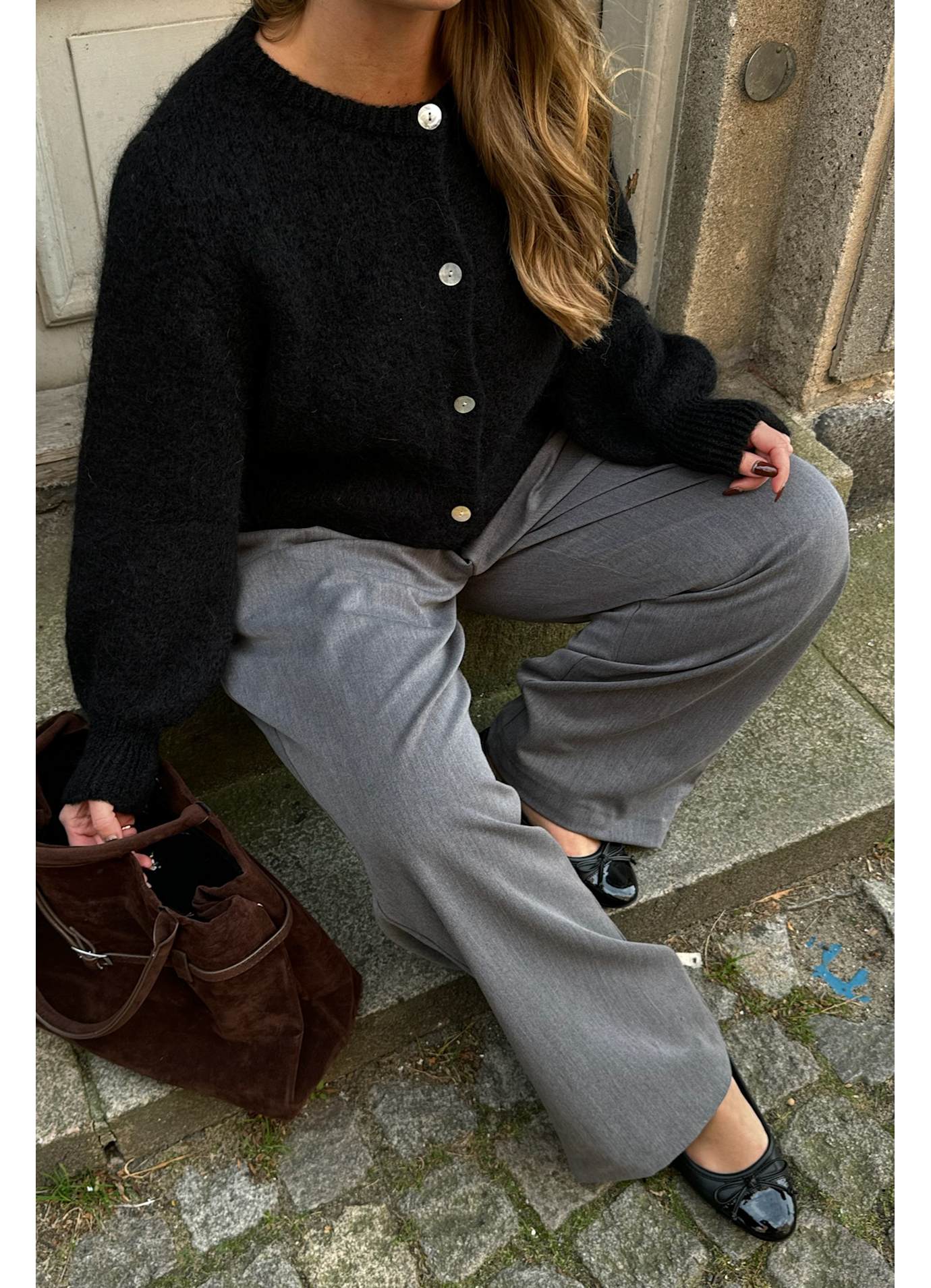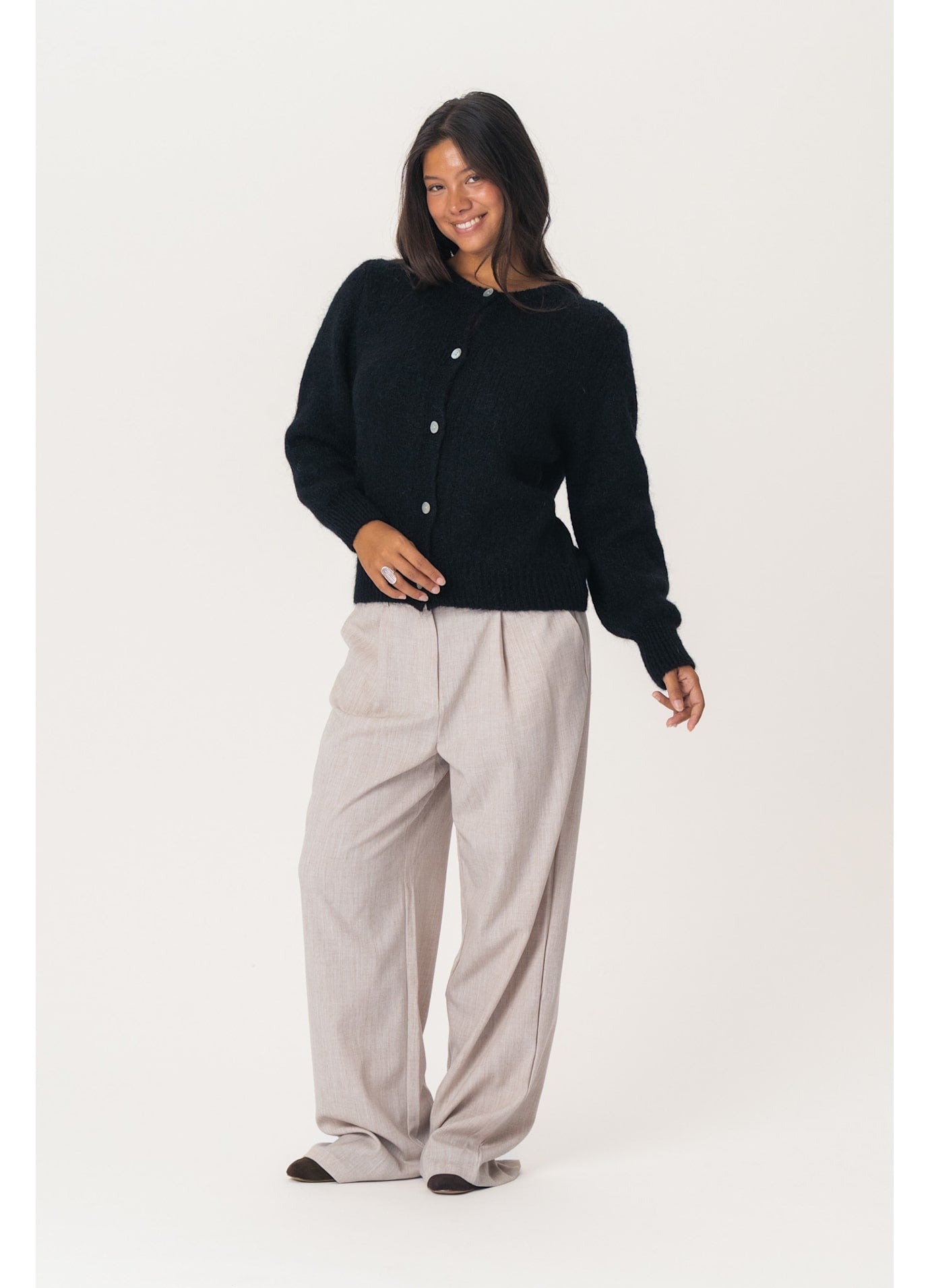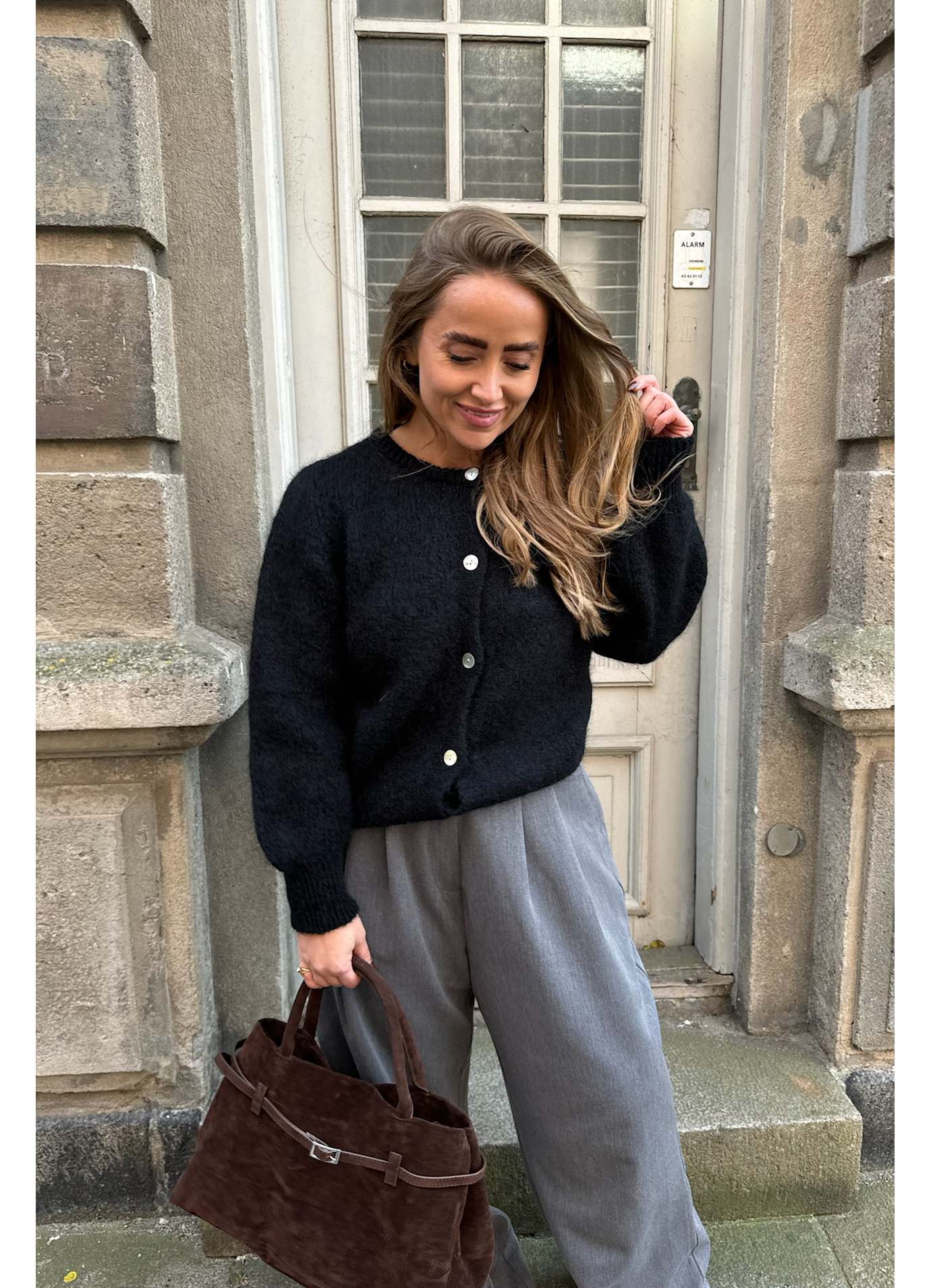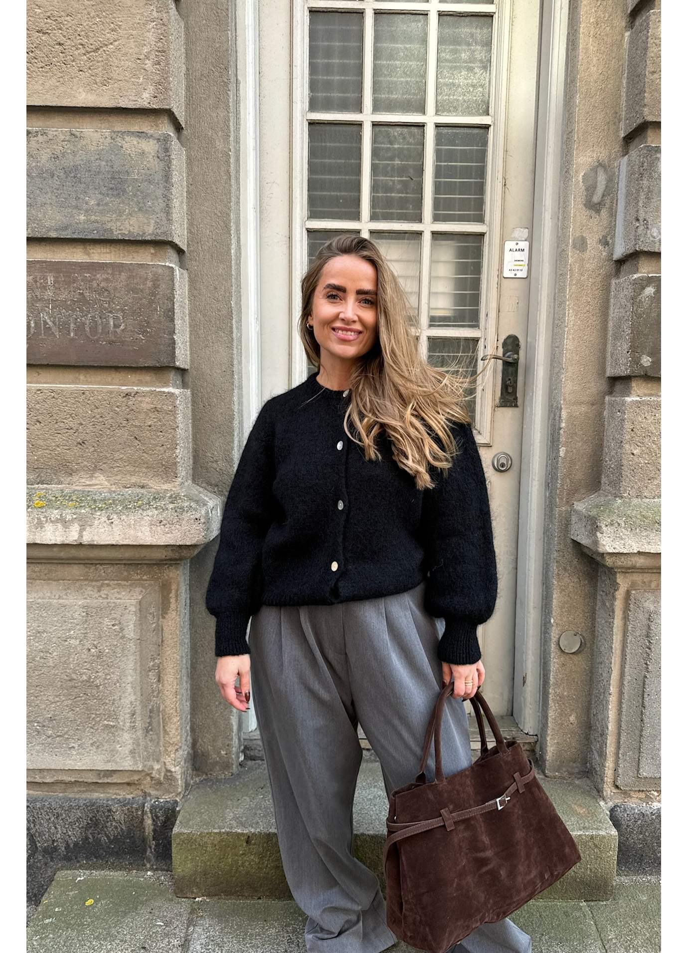 Denne elegante cardiganen kombinerer klassisk design med moderne komfort. Den er strikket i en myk og lun ullblanding som føles behagelig mot huden og holder deg varm gjennom kjølige dager. Cardiganen har en avslappet passform med ribbestrikkede kanter og delikate knapper i front, som gir et stilrent og feminint uttrykk.