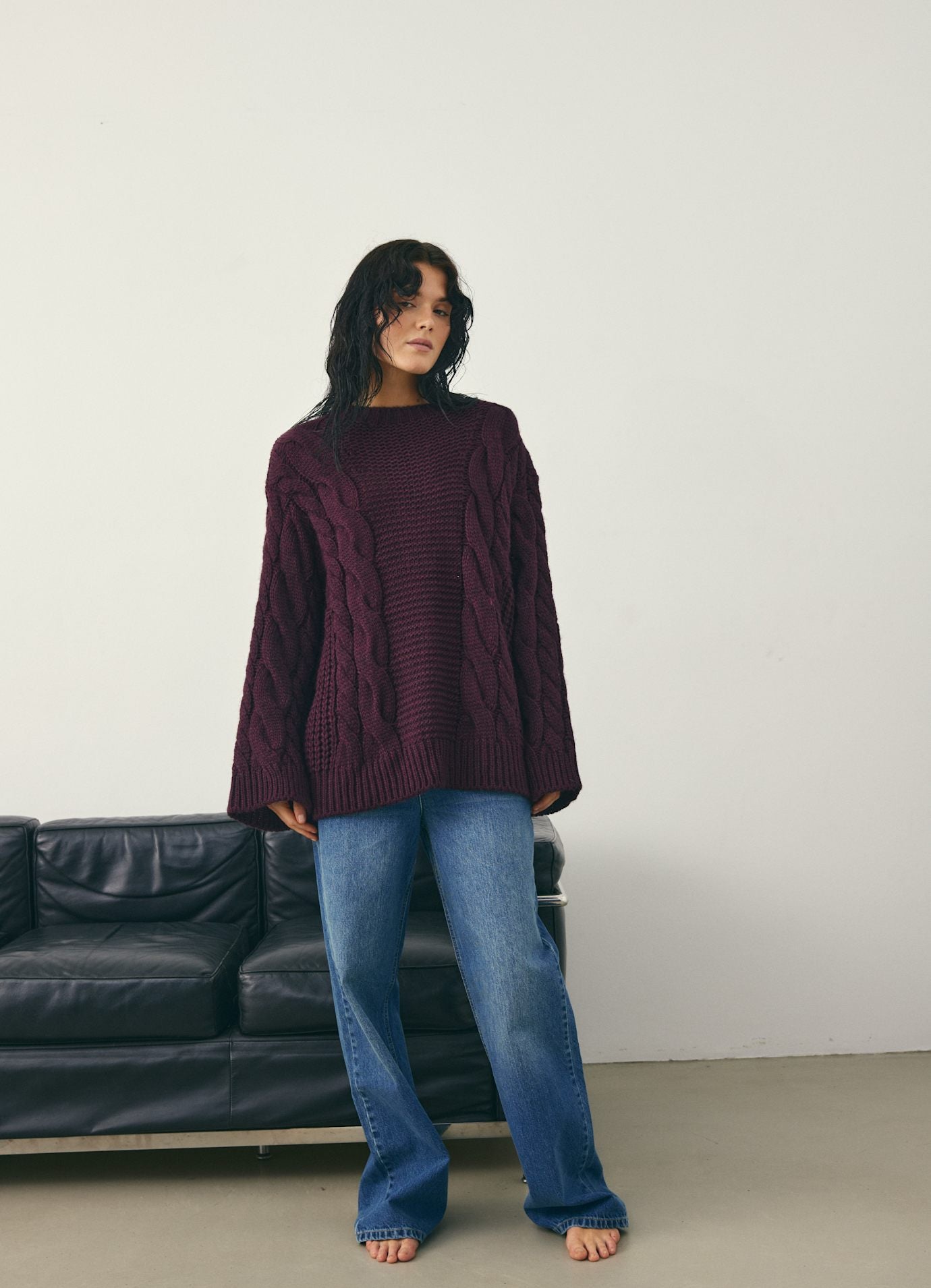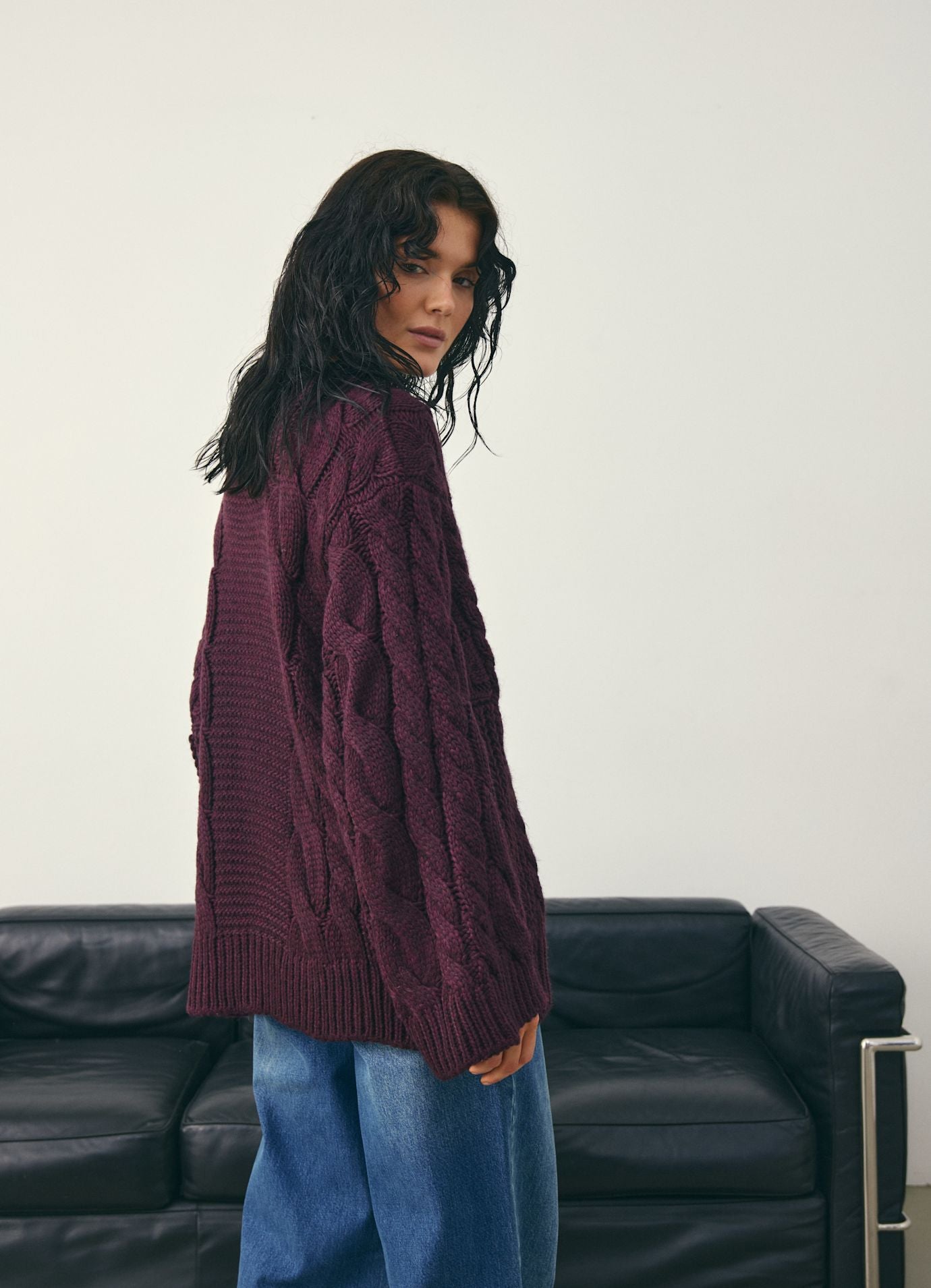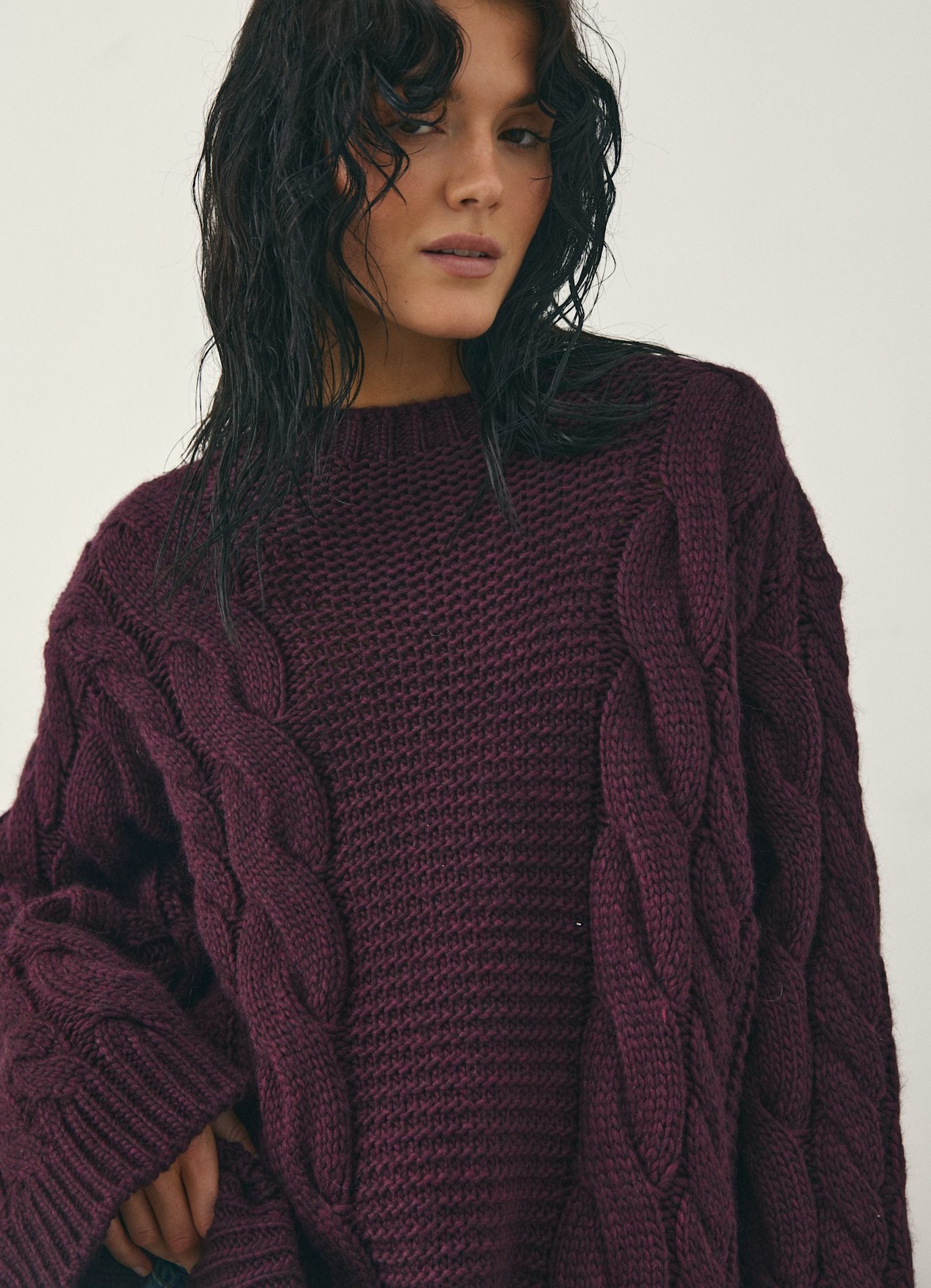 Kos deg i stil med vår luksuriøse Bordeaux Cable Knit Genser